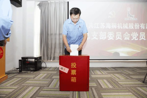本次选举大会在庄严的国歌声中拉开帷幕,会议由海狮党总支书记、总经理邬士新主持,大会严格按照换届程序,审议通过了各项议程。