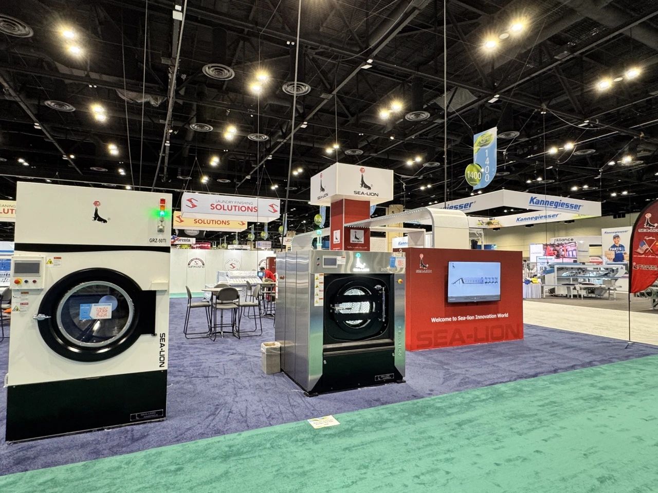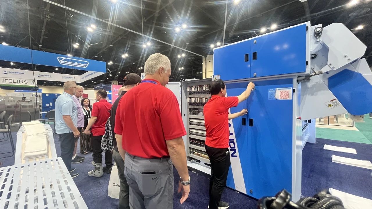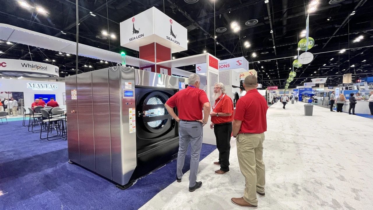 针对中小型洗涤厂普遍面临的洗净度问题、大型洗涤机构的能源消耗难题,以及各大医疗卫生机构洗涤方案单一不全面等多种状况。在本次国际盛会上,海狮机械集中展示了最新研发的高效节能洗涤烘干设备与智能化后整理设备,凭借在绿色环保、节能降耗、洗涤功效等方面的突出优势,成为展会焦点之一。
